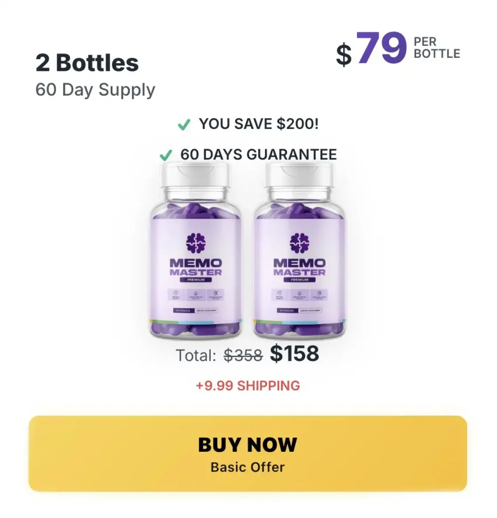 f you’re ready to regain mental clarity, sharper memory, and lasting focus, the next step is simple: make Memo Master part of your daily routine. By ordering directly from the official website, you ensure you receive the authentic formula backed by a 60-day money-back guarantee.